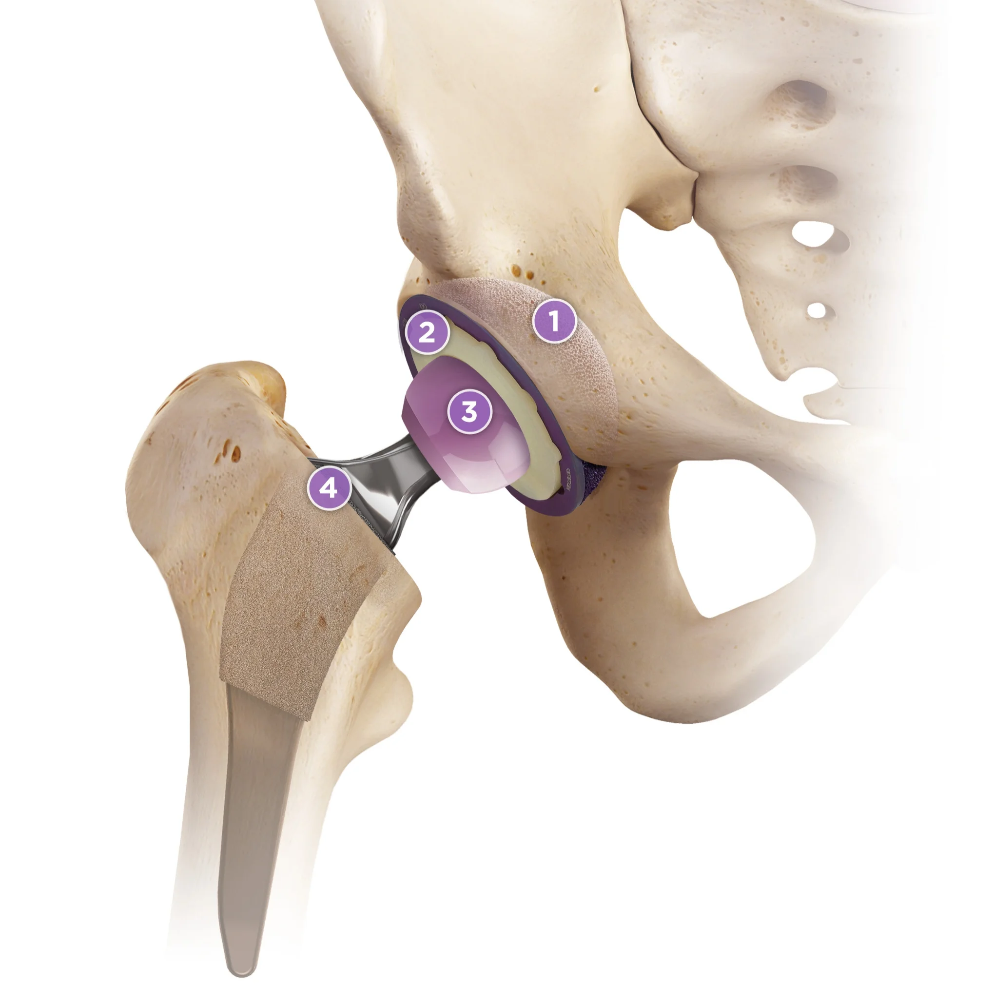 Hip replacement surgery is intended to relieve hip pain and restore the mechanics and function of your hip. The damaged bone and cartilage are removed and replaced with an implant intended to replicate the natural motion of the hip.
